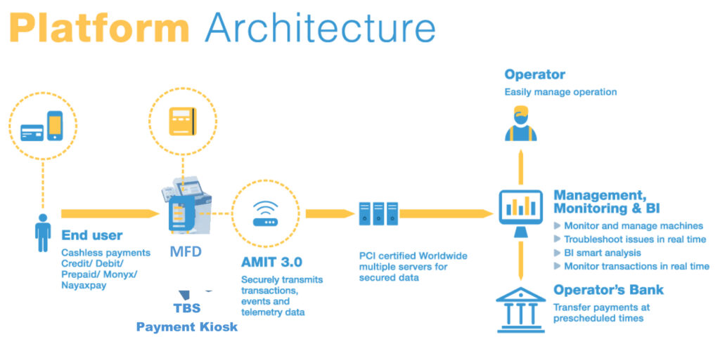 The TBS Payment Kiosks with Credit Cards are universally certified and designed to empower automatic/unattended machine operators with the latest technology and clearing solutions. Operators no longer need to concern themselves with the management or security of merchant or cellular accounts. The monitoring of these accounts and data security are included as part of this all in one cashless solution. This solution includes an online interface. Our software receives all the data from the cashless device and helps your staff manage and monitor every aspect of the operation. A key feature of the TBS Payment Kiosks with Credit Cards is the ability to centrally manage all your multifunction devices from one application. Business managers enjoy reliable data without having to rely on information provided by other personnel. One person can oversee a multitude of TBS9900 Payment Kiosks at a glance with drill-down capability for more detailed information. This means fewer resources are required to manage these devices.